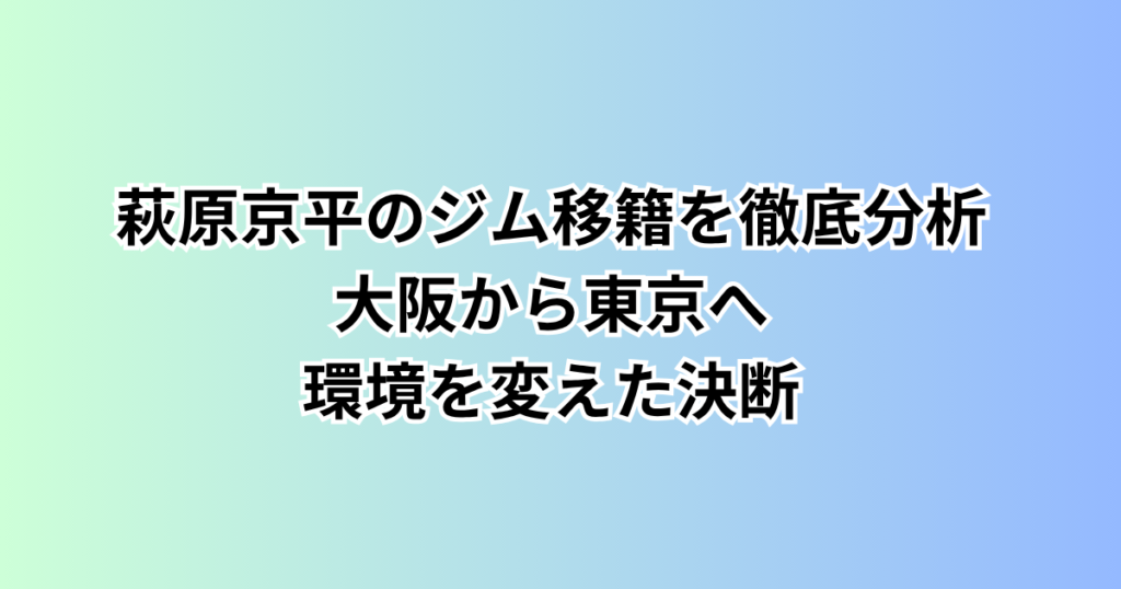 萩原京平のジム移籍を徹底分析|大阪から東京へ、環境を変えた決断