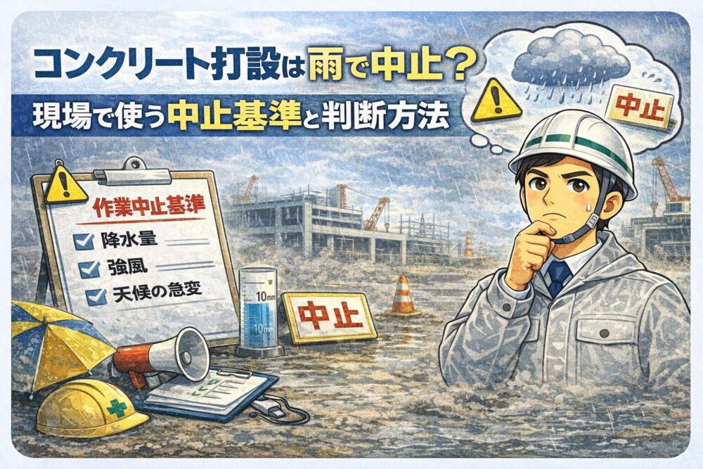 こんにちは、たかしんです。 施工管理として15年、工程管理・安全管理を中心に現場を担当し、1級建築施工管理技士として多くの現場を見てきました。 コンクリート打設の雨中止基準って、現場にいると結構悩みます。コンクリート打設中に雨が降った場合どう...