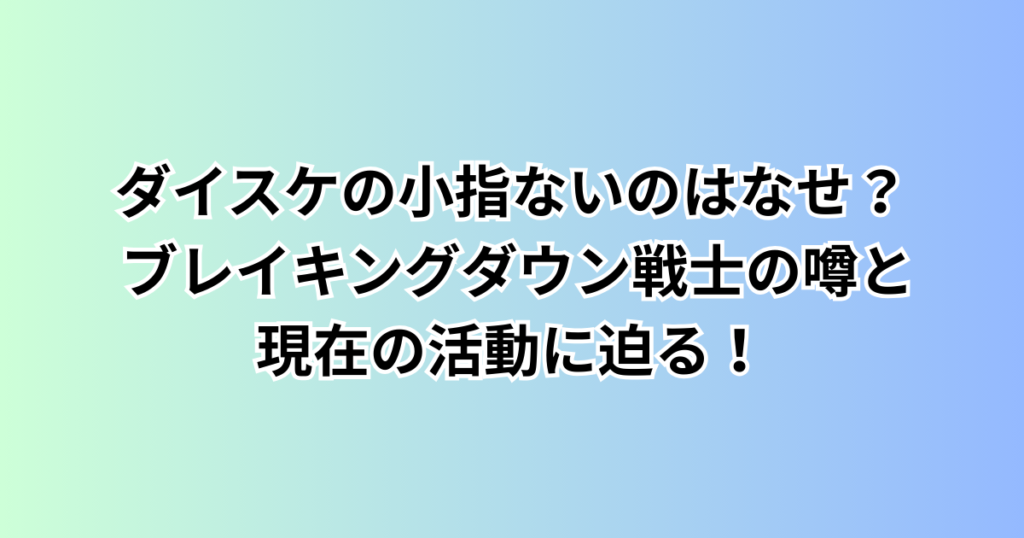 ダイスケの小指ないのはなせ? ブレイキングダウン戦士の噂と現在の活動に迫る!