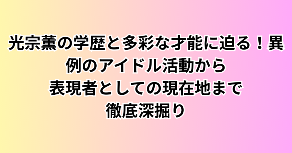 光宗薫の学歴と多彩な才能に迫る!異例のアイドル活動から表現者としての現在地まで徹底深掘り