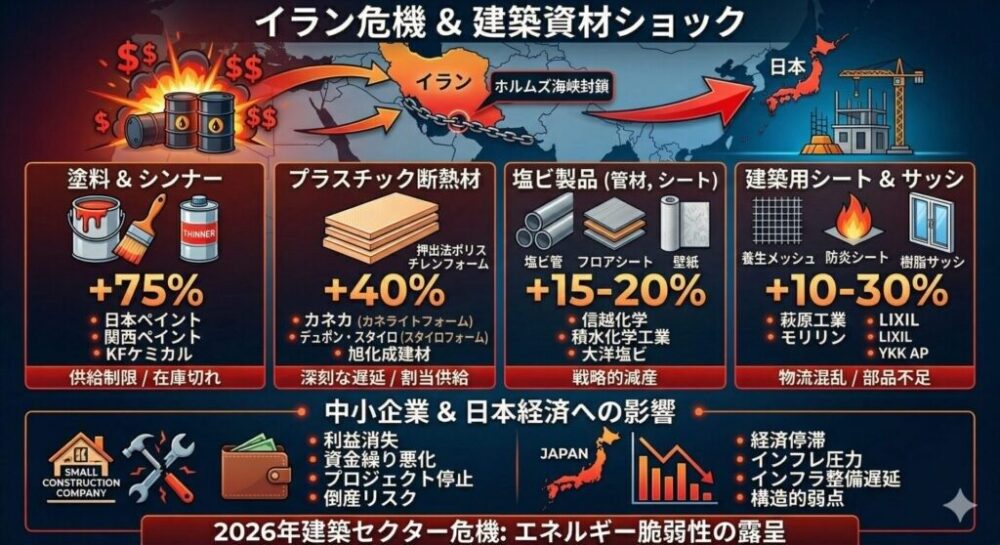 この出荷制限の問題が招いているもうひとつの副作用が、転売市場の過熱です。1缶4,000円前後で流通していたシンナーが、ネット上の転売市場では15,000円を超える価格で取引される事例が報告されています。材料が入手できないことへの焦りから、割高でも購入せざるを得ない業者が出てきており、こうした異常な価格が「相場」として定着していく危険性があります。施工管理の立場からすると、こうした転売品の品質保証がされているかどうかも気になるところです。