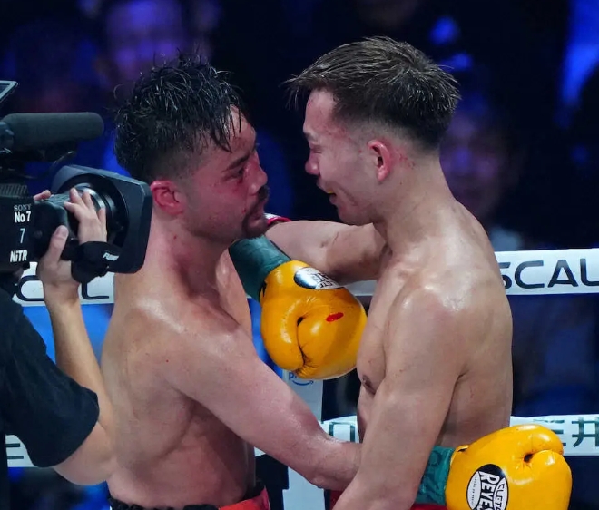井上拓真選手もハイレベルな世界王者であり、この試合は両者の力が拮抗した好試合となりました。試合後、両選手は互いを称え合っています。